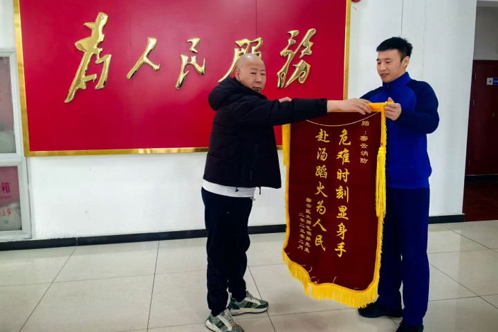 2月17日,密云区人民政府办公室回复孙先生,救他的小伙子名为李鹏宇,就职于密云区巨各庄消防救援站。得知救命恩人的工作单位后,孙先生便做了一面印有“危难时刻显身手,赴汤蹈火为人民”字样的锦旗,登门致谢。